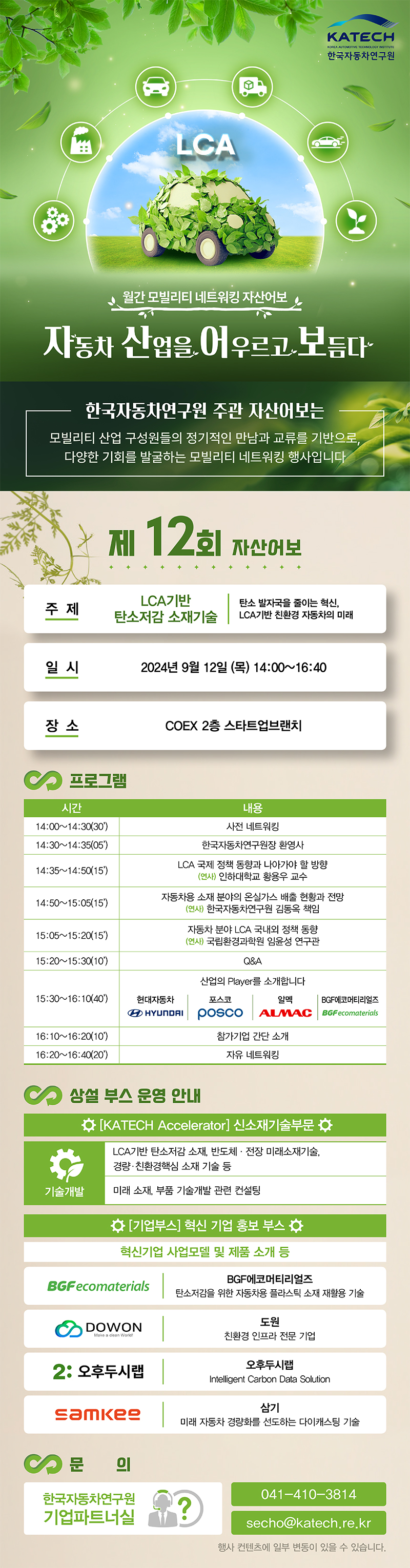 「제 12회 자산어보」의 테마는 LCA기반 탄소저감 소재기술로 다양한 컨텐츠를 준비하였습니다.
