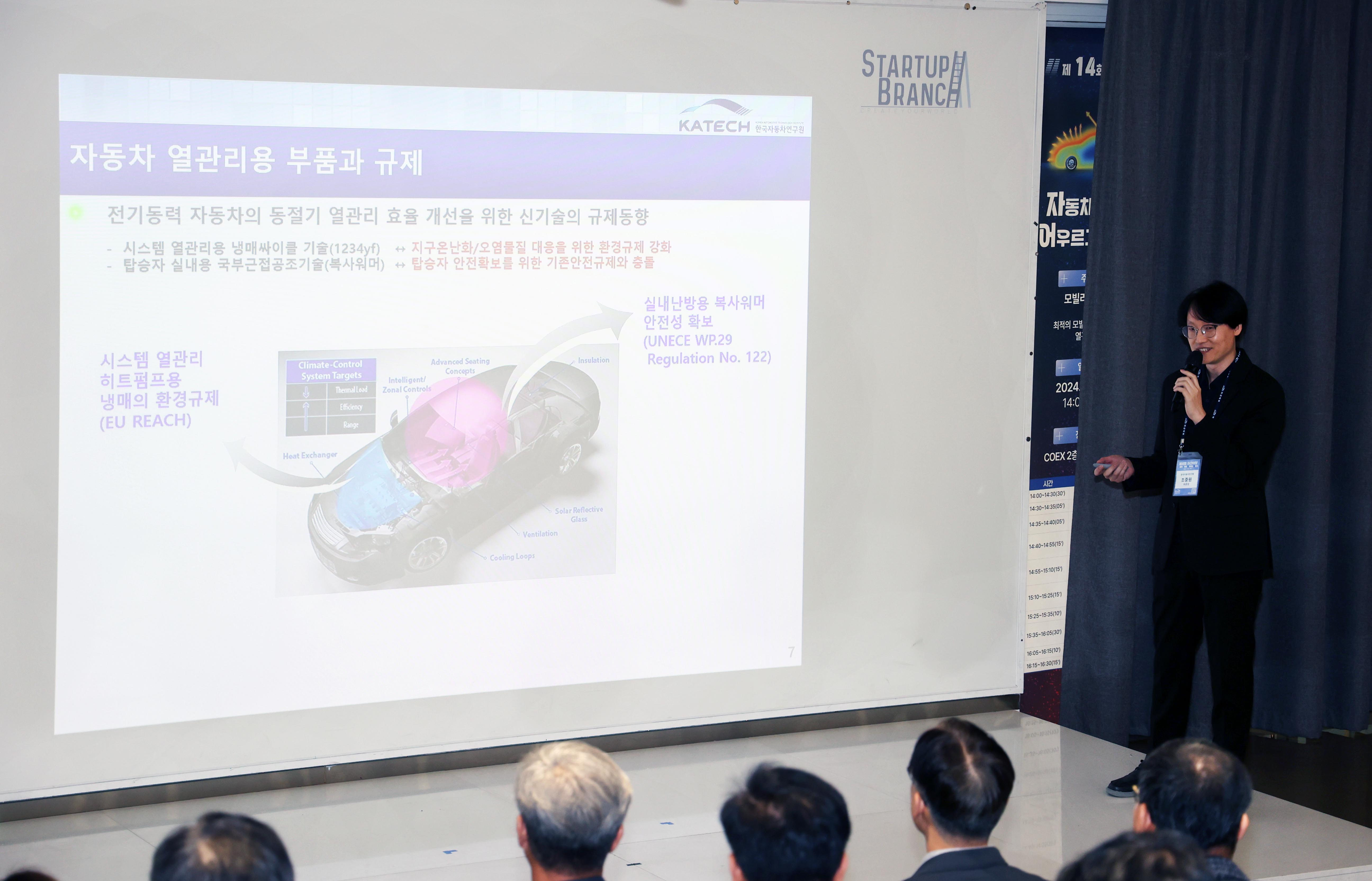나승식 슬롯사이트장은 2024. 11. 14(목) 14:30 서울 강남구 코엑스 스타트업 브랜치에서 오만주 현대슬롯 연구위원, 왕윤호 한온시스템 부사장, 오대윤 명화공업 연구소장, 김태신 디엔오토모티브 상무, 공상호 LS오토모티브 상무, 심명섭 현대포리텍 사장, 김민수 서울대학교 교수 등 모빌리티 산업관련 완성차사, 중소·중견 부품기업 및 유관기관 관계자 130여명이 참석한 가운데 ‘최적의 미래 모빌리티 성능과 경쟁력 확보의 핵심인 열관리 기술의 혁신과 발전 모색’을 위해 “모빌리티 열관리(최적의 모빌리티 성능을 위한 열관리 전략)”를 주제로 열린 「제14회 자산어보」 행사에 참석하여, 섀시·소재기술연구소 산하 ‘열제어기술부문’의 연구성과·기술컨설팅 부스 및 한온시스템, 테라온, 와이엠레미 등 3개 혁신기업의 홍보부스를 둘러본 후 환영사를 통해 “최적의 모빌리티 성능과 에너지 효율을 극대화하기 위한 다양한 열관리 기술의 개발 경쟁이 가속화되고 있으며, 산업 구성원 간 교류와 협력을 통해 혁신 기술 개발과 실용화로 이어질 수 있도록 교두보 역할을 다하겠다.”고 밝혔다.