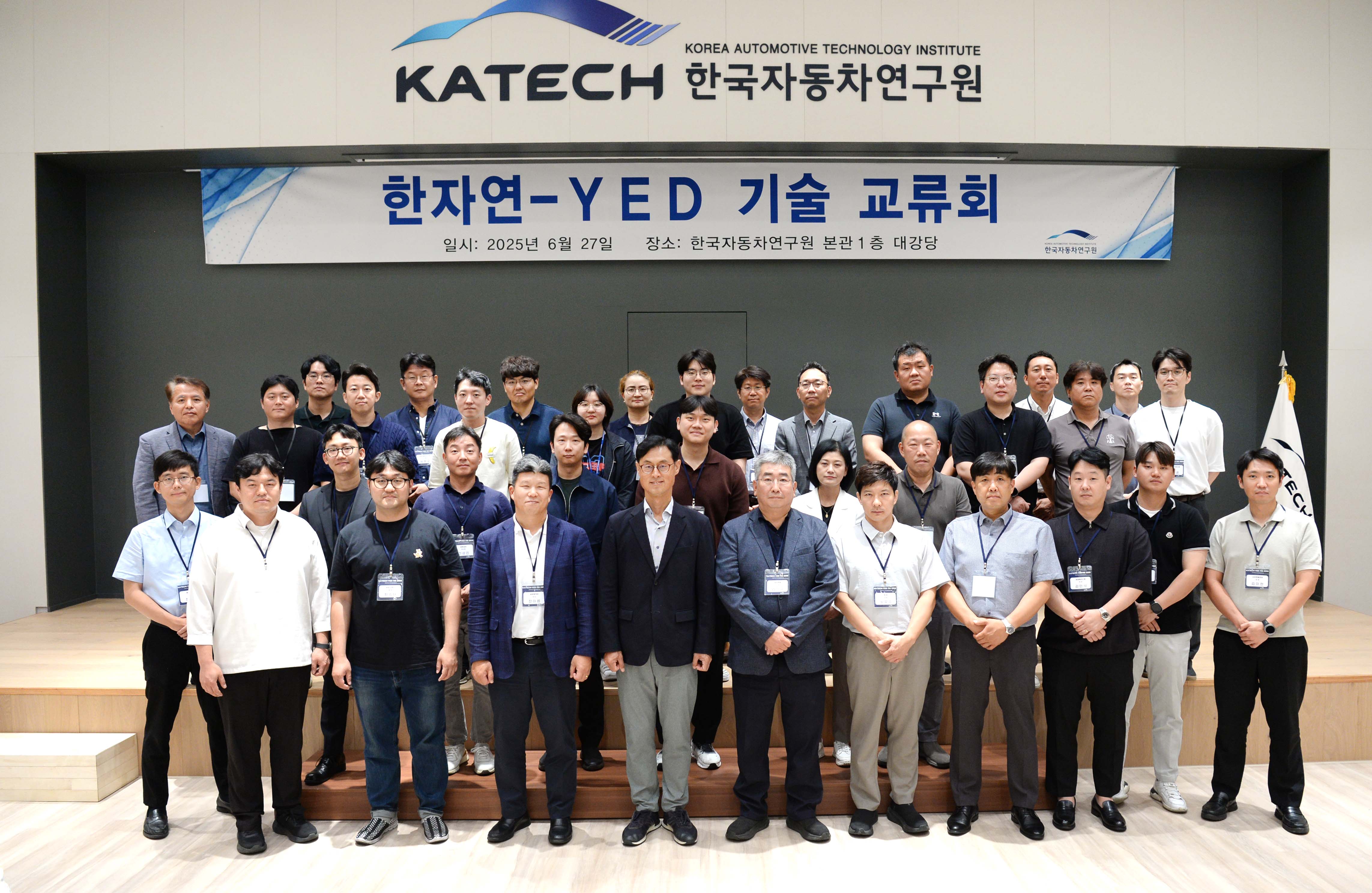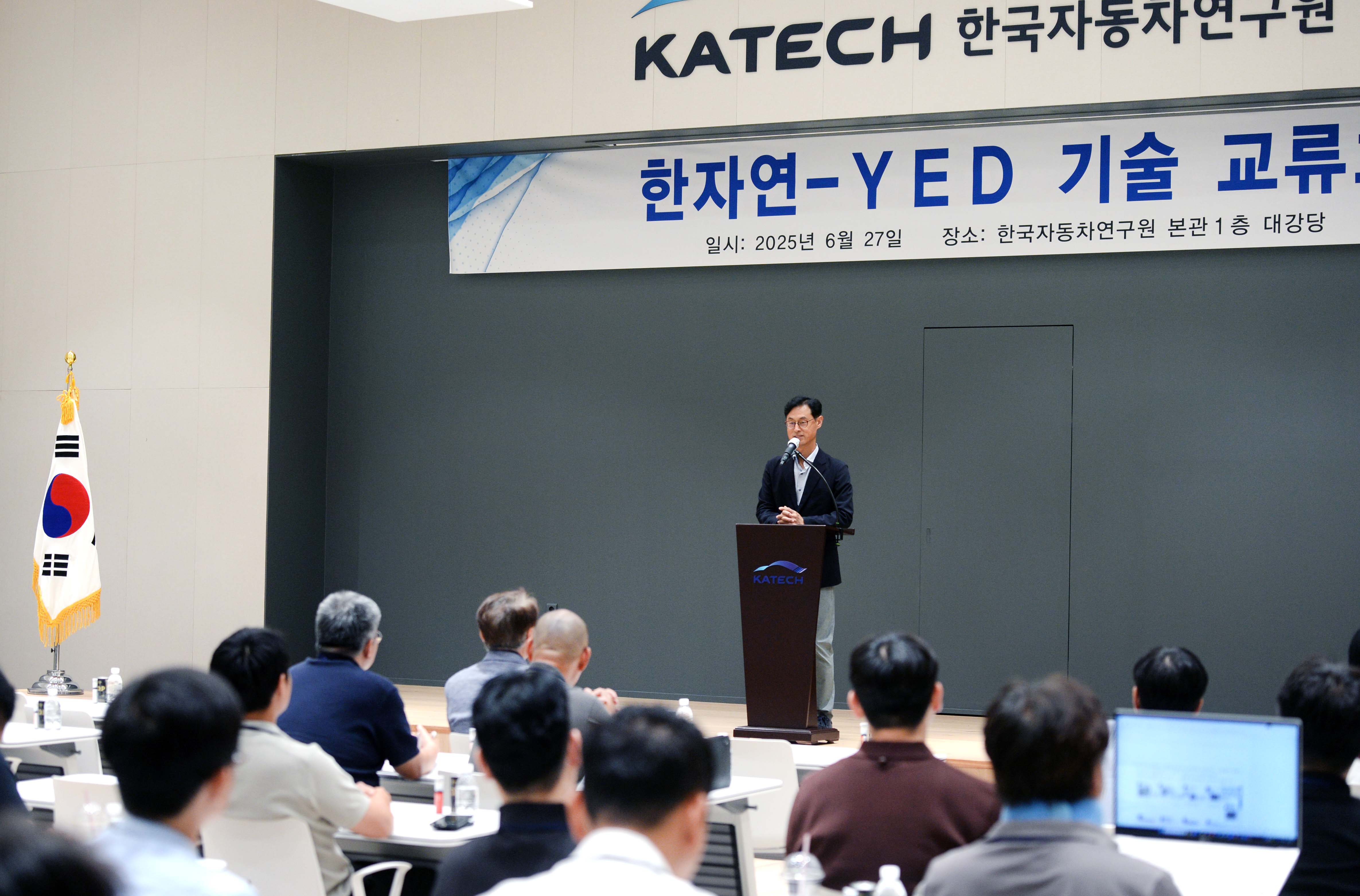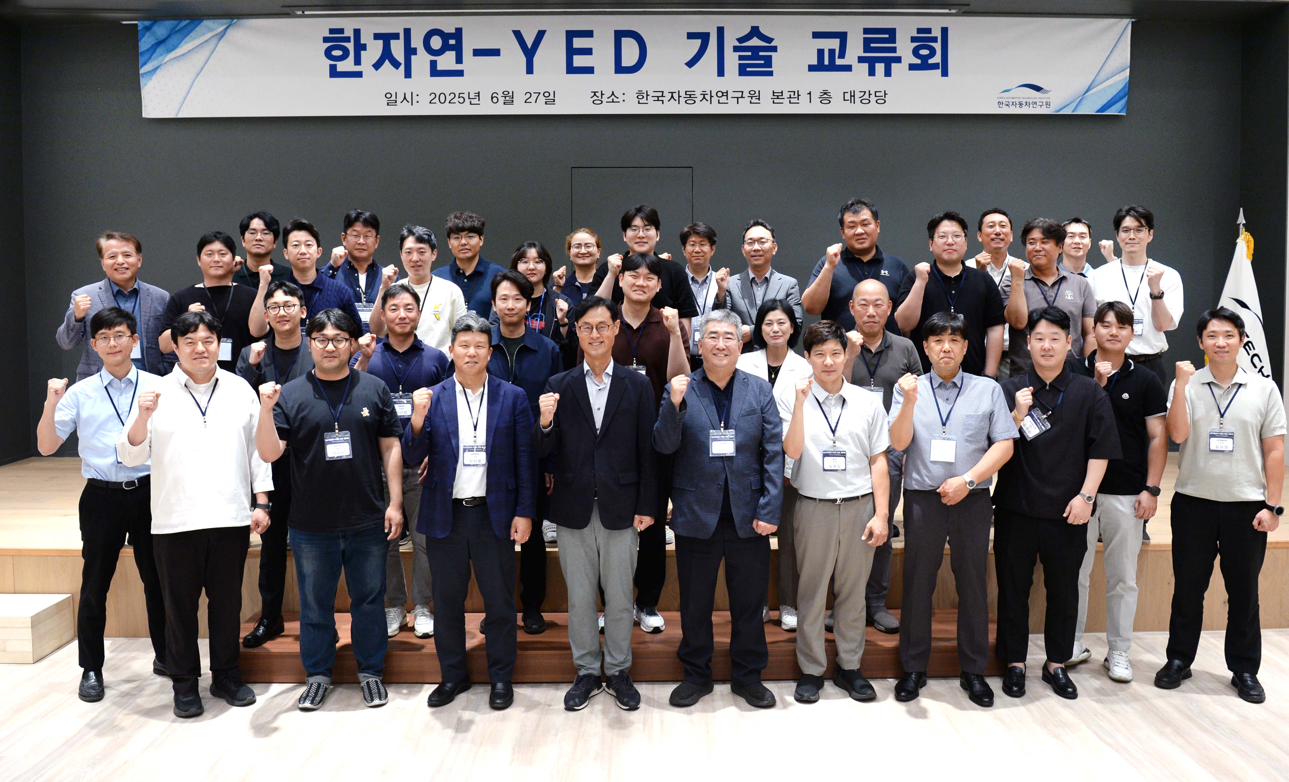 진종욱 슬롯사이트장은 2025. 6. 27(금) 14:00 충청남도 천안 슬롯사이트 본원 대강당에서 ‘다이캐스팅 관련 기술 정보 교류 및 상호 협업 기회 모색’을 위해 한범석 한자연 섀시·소재 연구소장, 황세준 네덱 대표, 구민우 금오EMS 대표, 김민규 삼오정밀 대표, 김민석 우성에이디엠 대표, 노유승 동우 대표, 김이현 신안정밀전자 대표, 신상훈 동성다이캐스팅 대표, 염동우 창화테크 대표, 장문석 일신다이캐스팅 대표, 한아름 금성열처리 대표를 비롯한 다이캐스팅 관련 기업인 및 섀시·소재 연구소 관계자 등 60여명이 참석한 가운데 열린 「다이캐스팅 기업 기술 교류회」에 참석하여, 인사말을 한 후 ‘슬롯사이트의 핵심 기술 소개와 최신 경량화·스마트제조 기술을 발표’하고, EX-LAB, 연구3동, 종합연구2동, 신뢰성동 등 연구원 주요 시설 투어를 가졌다.