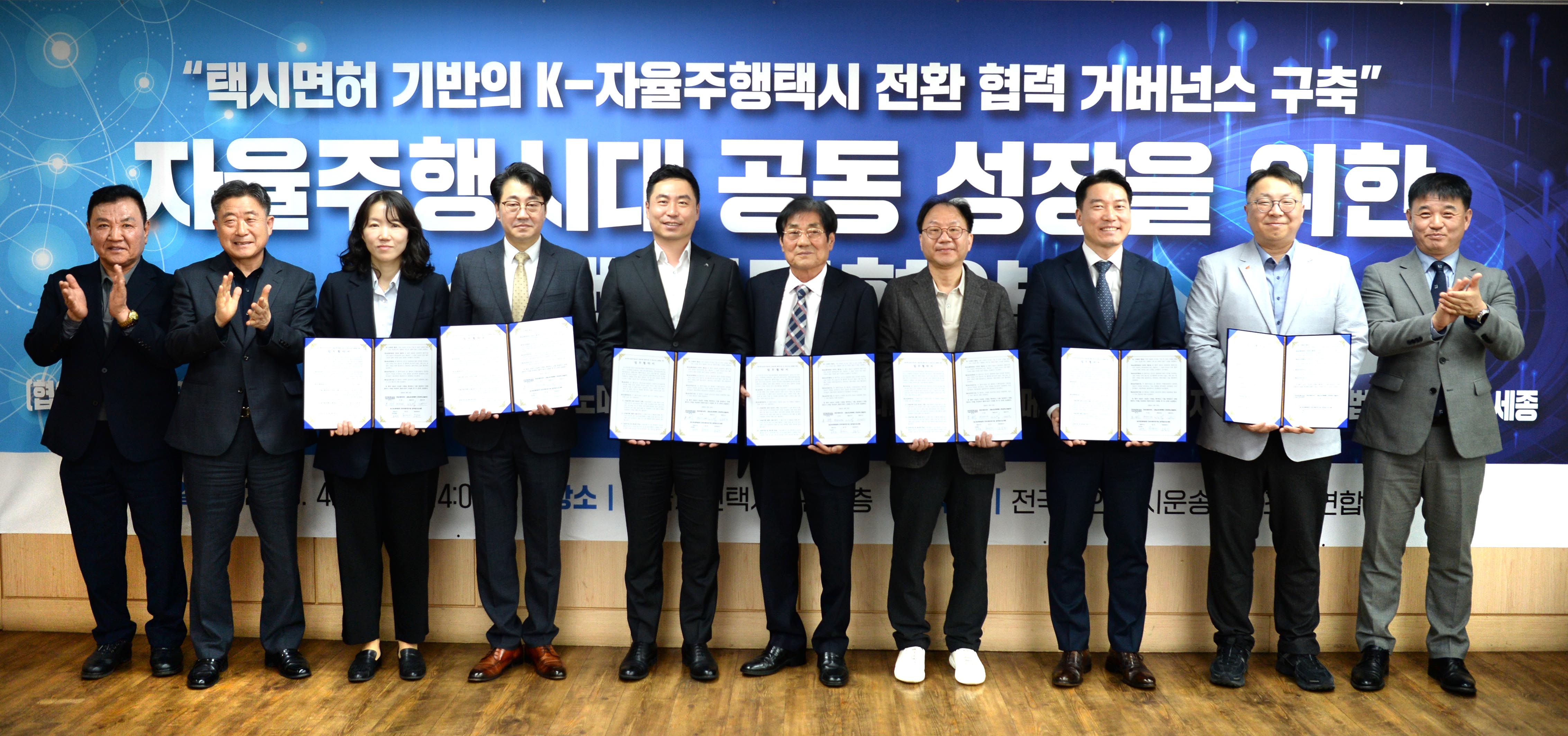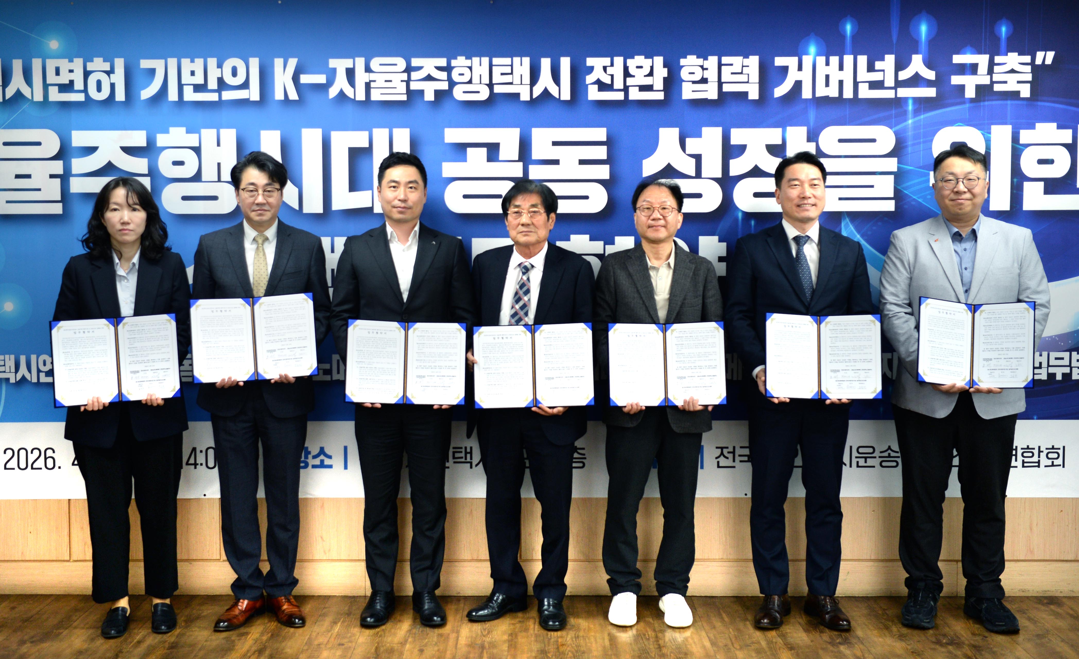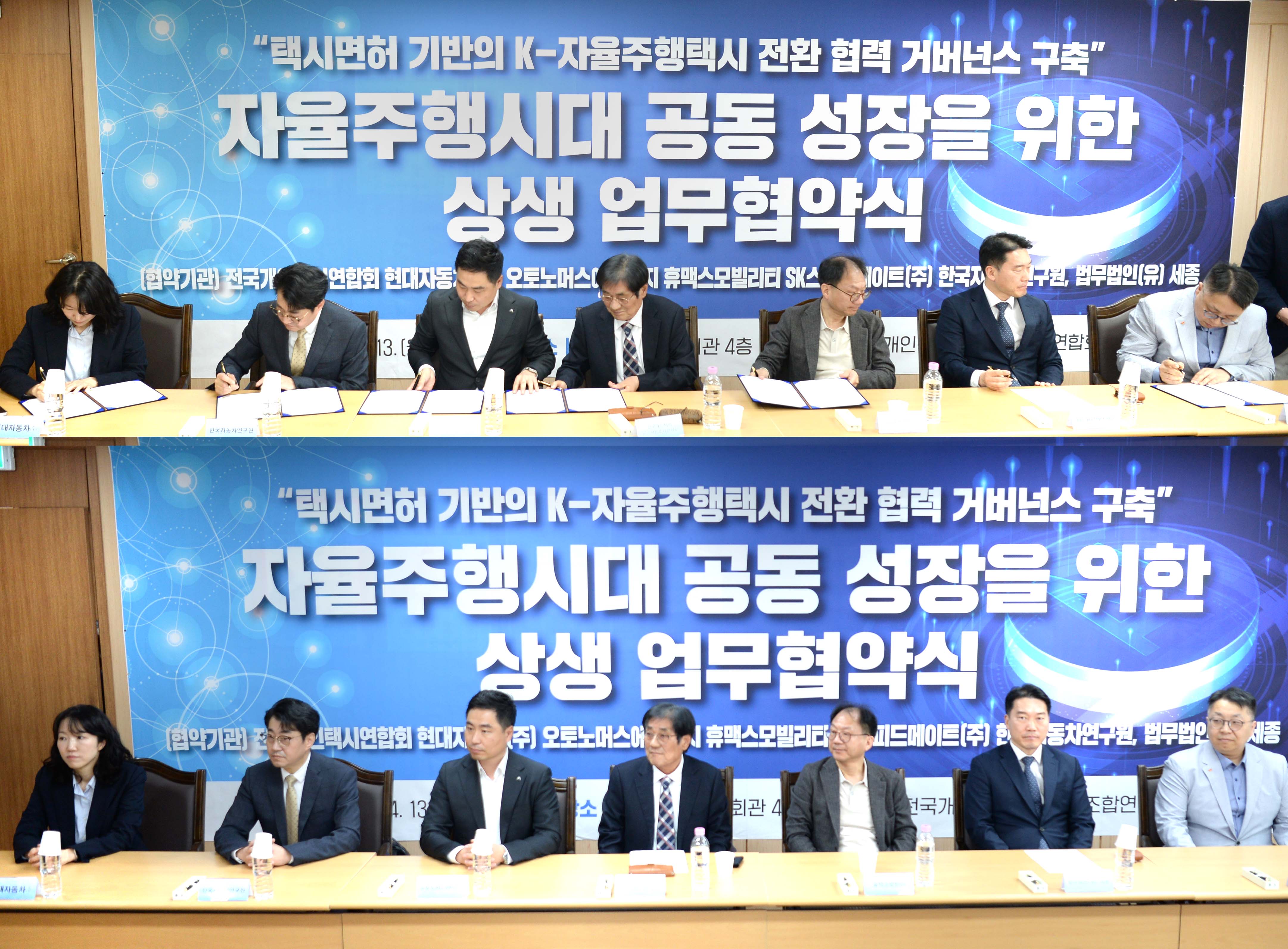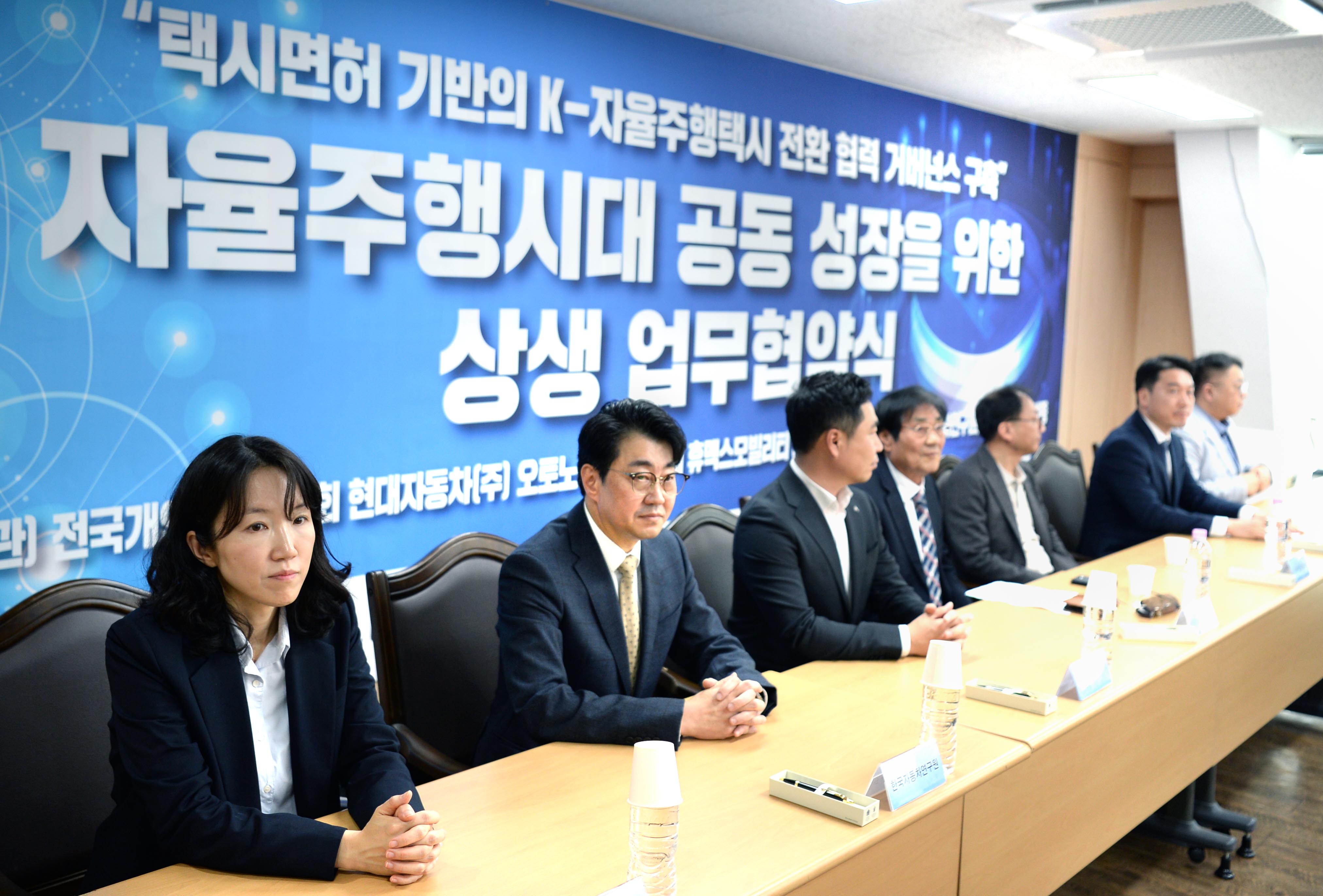 전병욱 슬롯사이트(진종욱 원장) AI·자율주행기술연구소장은 2026. 4. 13(월) 14:00 서울 강남구에 소재한 전국개인택시회관에서 “자율주행 시대를 대비한 협력체계 구축과 개인택시 산업의 지속가능한 발전”을 위해 슬롯사이트을 비롯한 전국개인택시운송사업조합연합회, 현대슬롯, 오토노머스A2Z, 휴맥스모빌리티, 법무법인 세종, SK스피드메이트와 다양한 분야의 참여기관이 참석한 가운데 「자율주행시대 공동성장을 위한 상생 업무협약식」을 체결하였다.