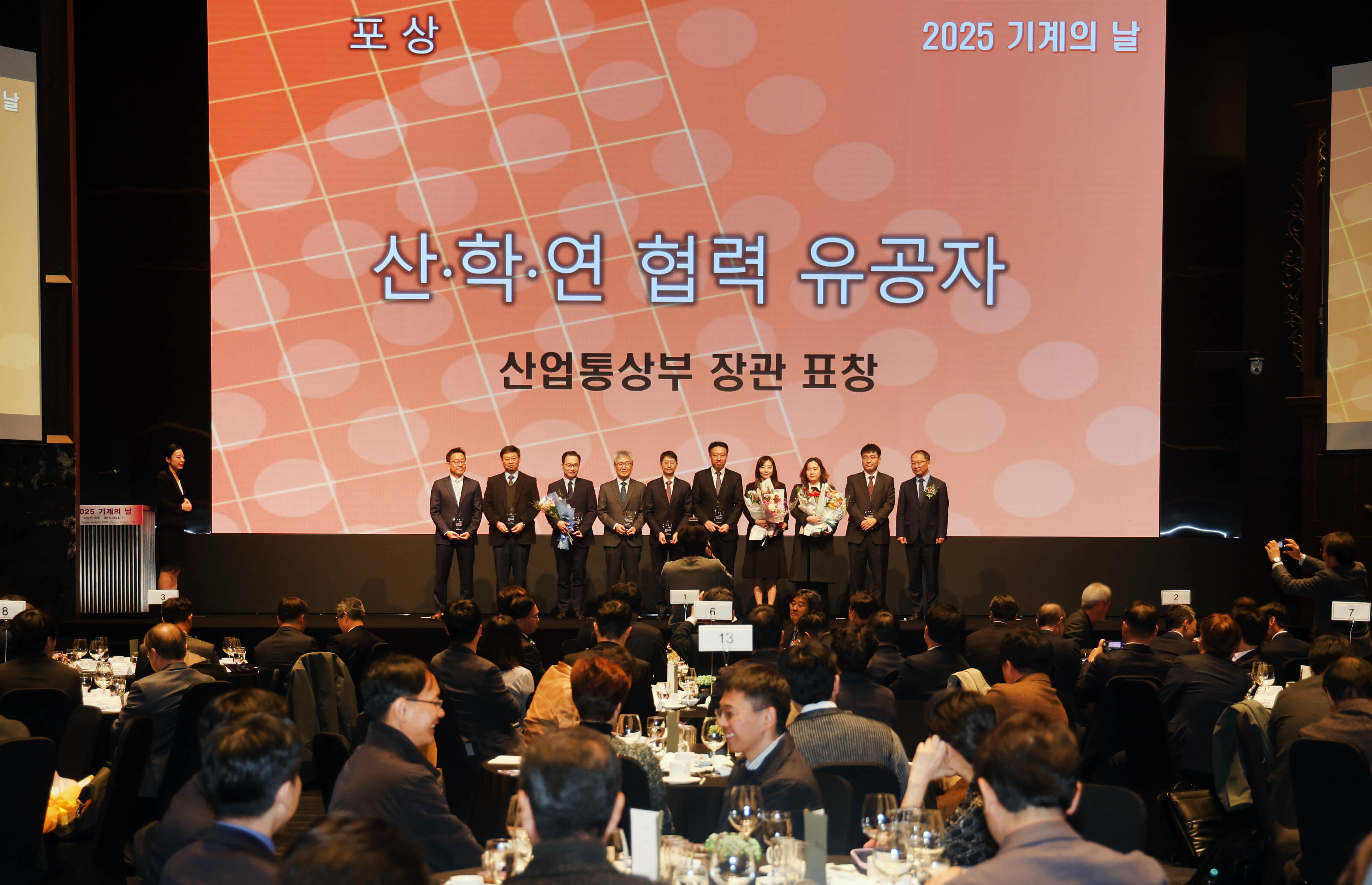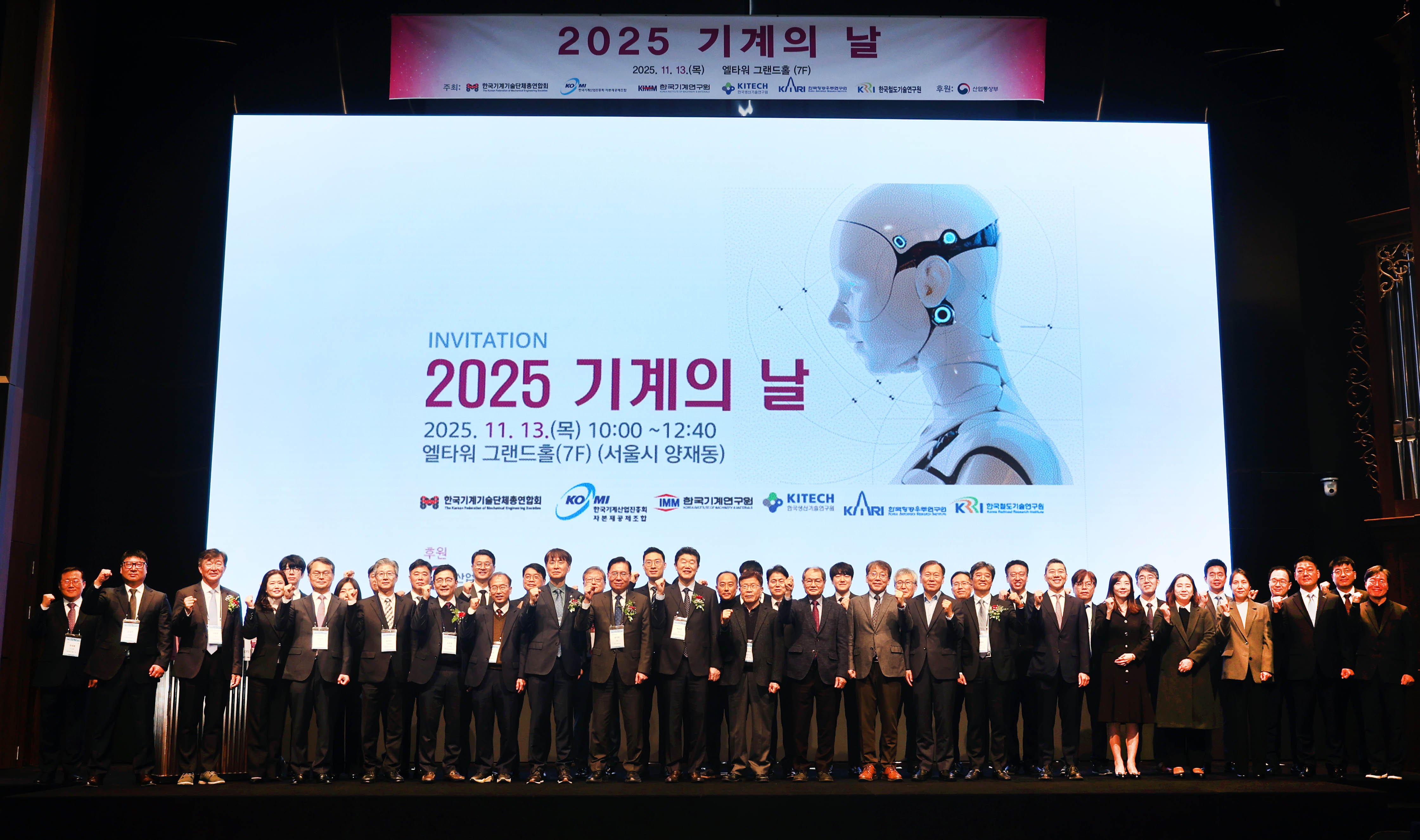 슬롯사이트(진종욱 원장)은 2025. 11. 13(목) 10:00 서울 양재동 엘타워 그랜드홀에서 배중면 한국기계기술단체총연합회장, 조영철 한국기계산업진흥회장, 박동일 산업통상부 산업정책실장, 류석현 한국기계연구원장, 윤병동 서울대 교수를 비롯한 산학연 수상자 및 관계자 200여명이 참석한 가운데 열린 「2025 기계의 날」행사에서, 슬롯사이트 정우영 수석연구원이 박동일 산업통상부 산업정책실장으로부터 산학연 유공자로 산업통상부 장관 표창을 수상하였다.