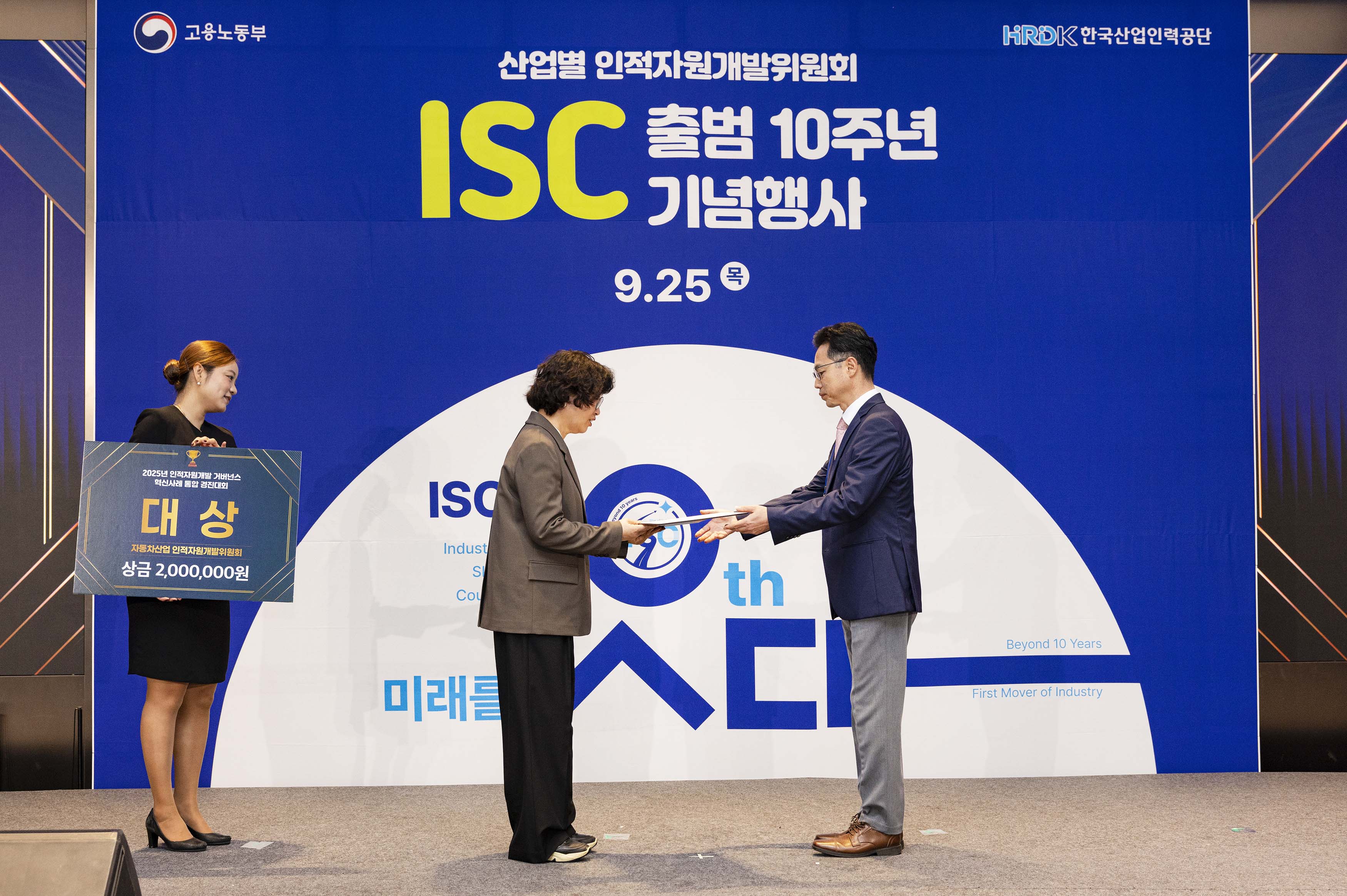 슬롯사이트(진종욱 원장)은 2025. 9. 25(목) 13:30 강서구 코엑스 마곡에서 “산업별 인적자원개발위원회(ISC)가 출범 10주년”을 맞아 고용노동부와 한국산업인력공단이 주최한 「2025년 ISC 혁신성과 경진대회」에서 슬롯산업 인적자원개발위원회(대표기관 : 슬롯사이트)가 ‘슬롯부품제조원(E7-3비자) 시범사업’의 혁신성과 사례인 “비자정책의 패러다임을 전환하다 : 산업주도・거버넌스 기반 외국인력 도입모델”추진으로 임영미 고용노동부 직업능력정책국장으로부터 김현용 슬롯ISC 사무총장(現 한자연 산업연구소장)이 ‘2025년 ISC 혁신성과 고용노동부장관상(대상)’, 정석현 슬롯 인적자원개발위원회 책임연구원이 우수전담자 특별상을 수상하고, 슬롯 ISC 혁신사례를 우수기관으로 발표를 하였다.