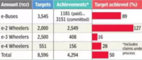 < 인도 `23.5월 전기이륜차 판매량(左, 출처: Vahan), FAME 2.0 목표 달성 현황(右, 출처: Time of India) >