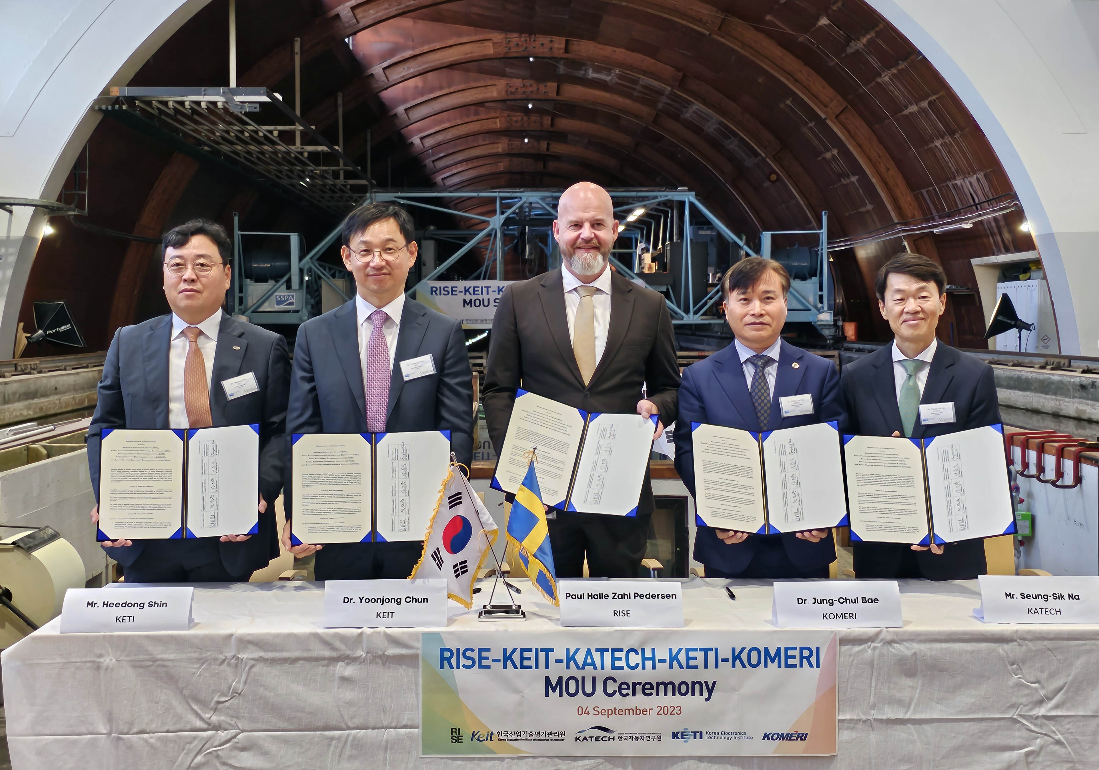 ○ 나승식 한자연 원장과 파울 할레 자히 페데르센 RISE 대표 직무대행, 전윤종 KEIT 원장, 신희동 KETI 원장, 배정철 KOMERI 원장은 지난 4일(현지시각) 스웨덴 예테보리에서 「첨단 모빌리티 경쟁력 강화를 위한 업무협약(MOU)」을 체결했다고 6일(수) 밝혔다.