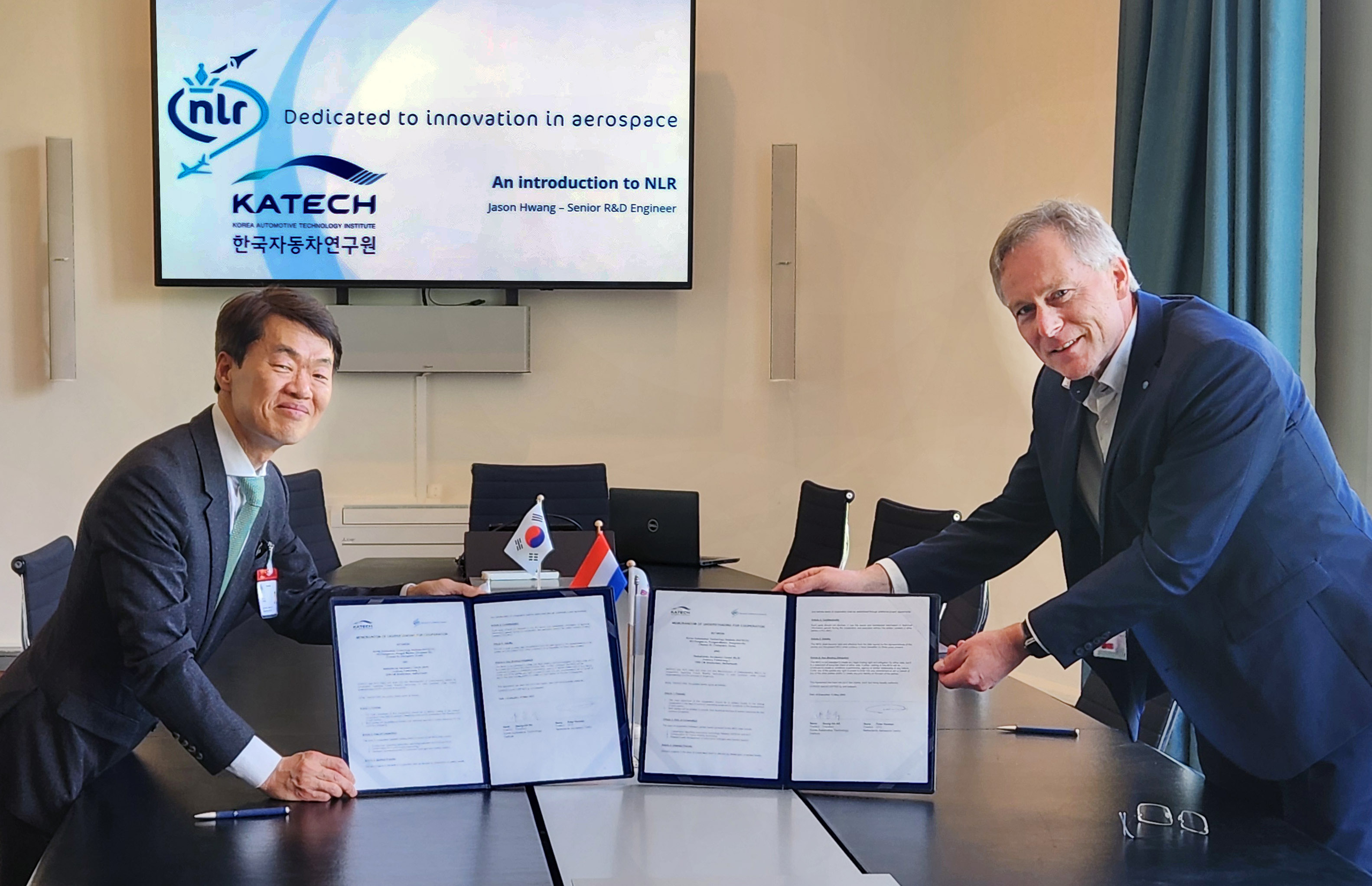 ○ 나승식 한자연 원장과 마이클 피터(Michel Peters) NLR 대표는 지난 14일(현지시각) 네덜란드 노르트홀란트주에 위치한 NLR Amsterdam 사무소에서「미래 모빌리티 기술 협력을 위한 업무협약(MOU)」을 체결했다고 16일(목) 밝혔다.