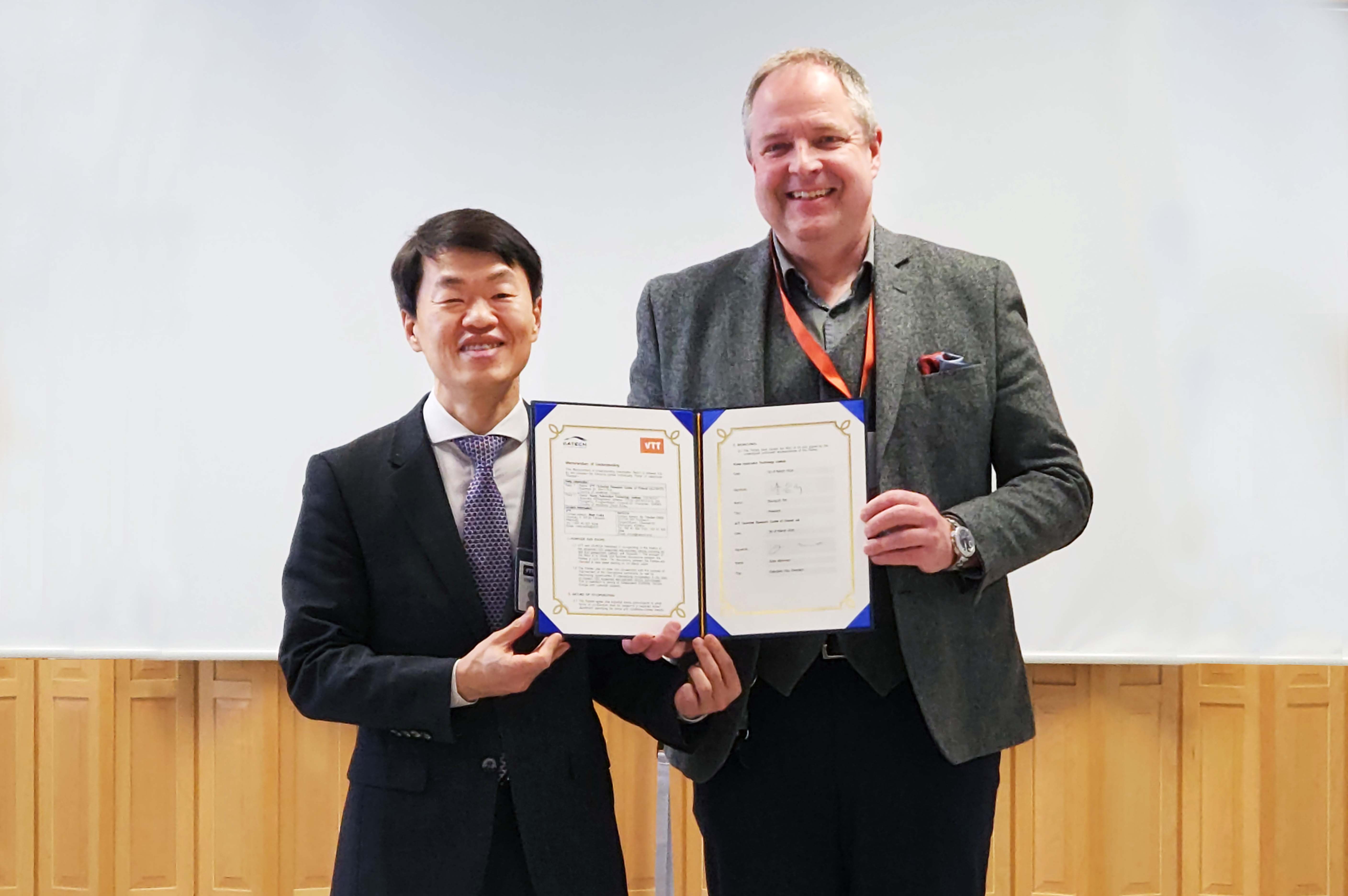 ○ 나승식 한자연 원장과 유시 마니넨 VTT 부사장은 지난 1일(현지시각) 핀란드 탐페레에 위치한 VTT 연구소에서「첨단 V2X 기술 협력을 위한 업무협약(MOU)」을 체결했다고 4일(월) 밝혔다.