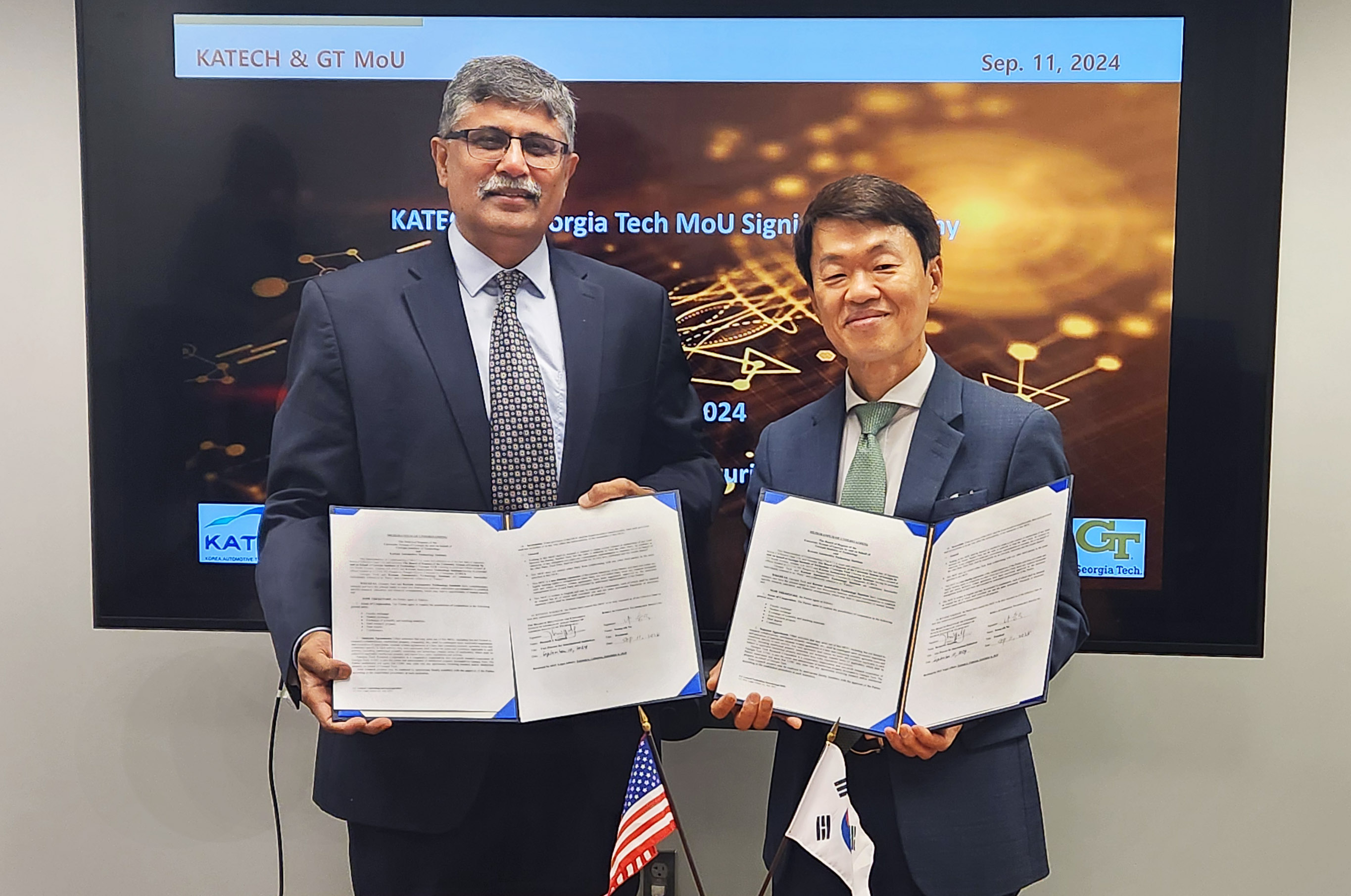 ○ 나승식 한자연 원장과 버나드 키펠렌(Bernard J. Kippelen) 조지아공대 국제협력 담당 부총장은 지난 11일(현지시각) 미국 조지아주 애틀랜타시에 위치한 조지아공대 제조연구소에서「미래 모빌리티 기술 협력을 위한 업무협약(MOU)」을 체결했다고 12일(목) 밝혔다.